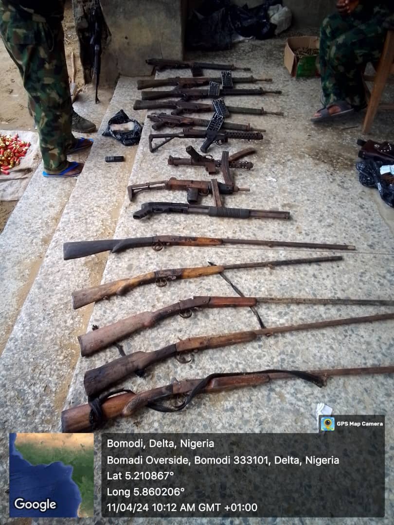 On April 10, 2024, troops of 63 Brigade conducted a raid/ cordon and search operations at Olota Community of Ugheli South LGA of Delta State confirming all these facts about Okuama and its surrounding communities with regard to their stockpile of arms for terror activities.