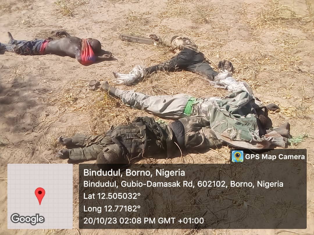 The troops of 5 Brigade Operation HADIN KAI deployed at Damasak eliminated six Islamic State of the West African Province(ISWAP), terrorists and injured several others in a failed ambush at Binduldul General area along MSR Maiduguri - Gubio - Kareto - Damasak Road.