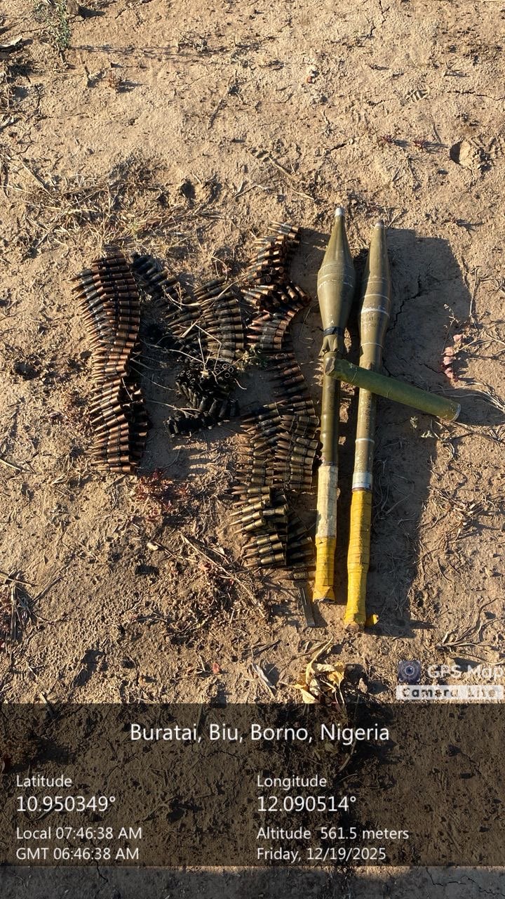 Following the foiled attack, troops conducted exploitation of the area and recovered several items abandoned by the fleeing terrorists, including six rocket-propelled grenade (RPG) bombs and charges, 366 rounds of 7.62mm by 51 ammunition, as well as a large quantity of expended PKT rounds.