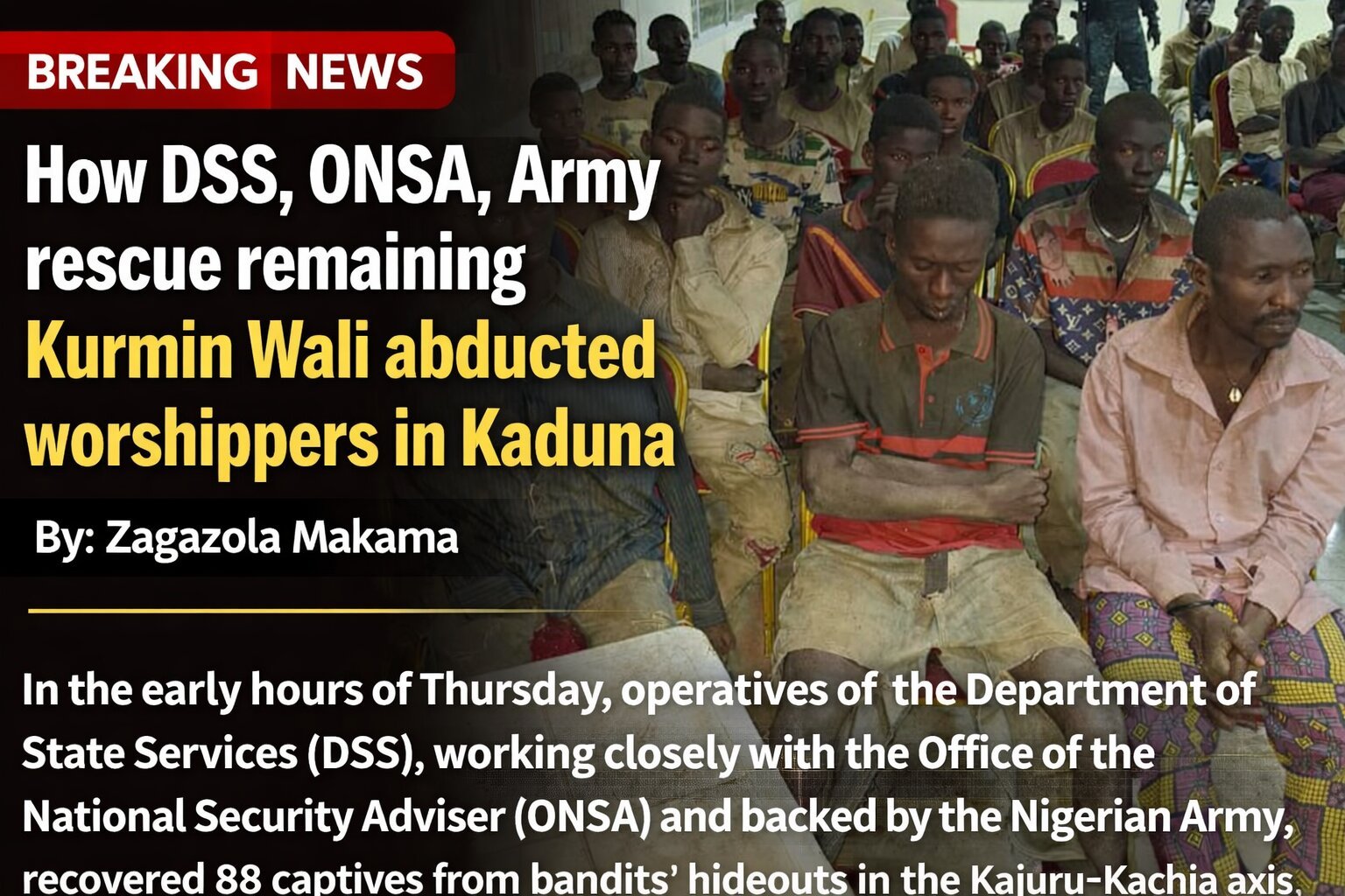 Zagazola Makama learnt from reliable sources that the incident occurred on June 29 at about 9:45 p.m., when an unspecified number of armed men stormed the community and forcibly took the 48-year-old traditional leader to an unknown destination.