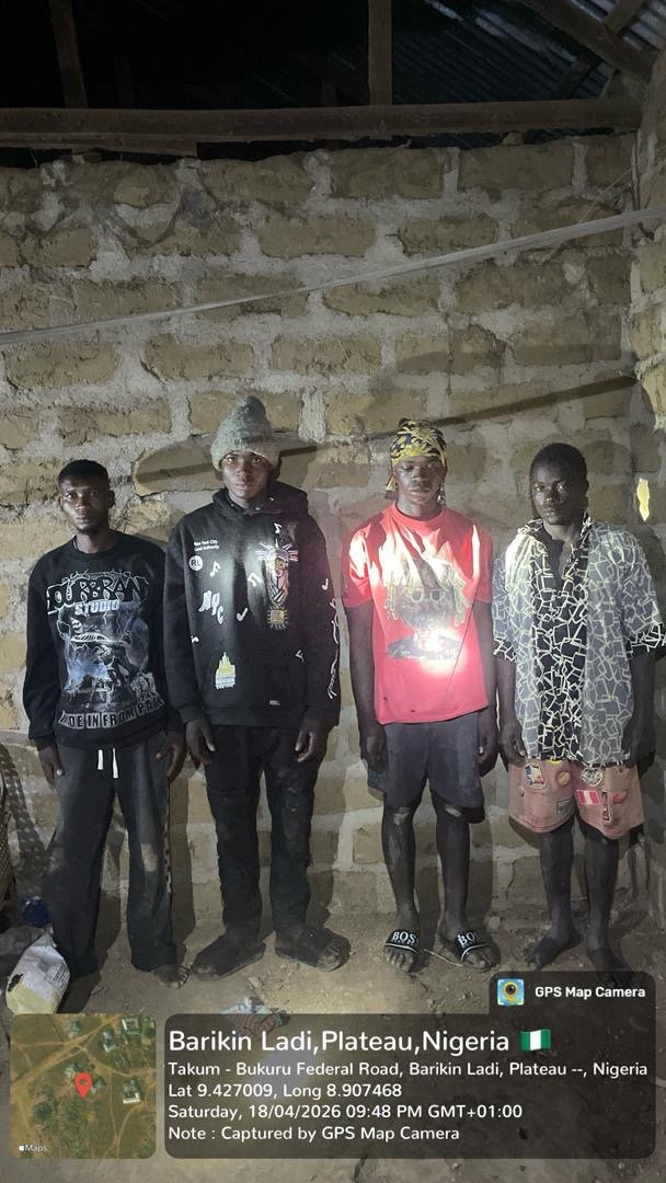 During the raid, troops stormed the location and apprehended four suspects identified as Aaron Joshua, 21; Ernest David, 21; Ishaya Haruna, 19; and Kyenshak Yakubu, 28.