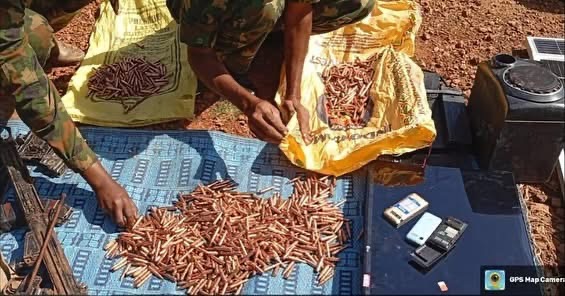 As part of efforts by security agencies to break the chain of illegal arms dealing and proliferation, credible intelligence confirmed the stockpiling of arms and ammunition by bandits in Barkin Ladi Local Government Area (LGA) of Plateau State. Following this discovery, troops of Joint Task Force Operation ENDURING PEACE (JTF OPEP) raided the hideout of a notorious bandit at Rawaya Village close to Kazok in Barkin Ladi LGA of Plateau State. The suspect fled shortly before troops arrived at the hideout. However, a thorough search at the hideout led to the discovery of Two AK-47 rifles, One G3 rifle, One revolver pistol, Four AK-47 rifle magazines, Three G3 rifle magazines, One Thousand One Hundred and Ninety-Eight rounds of 7.62 mm (Special) ammunition, Four rounds of 7.62 mm (NATO) ammunition, Three mobile phones, and other sundry items.