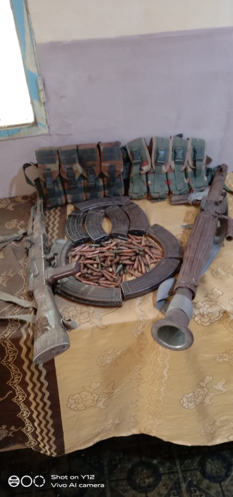 The search operation followed information from an arrested ISWAP Fighter who confessed to be an active member of ISWAP. Several weapons including one RPG Tube, one AK 47 Rifle, 182 rounds of ammunition and 9 AK 47 Magazines were recovered from the hideout.
