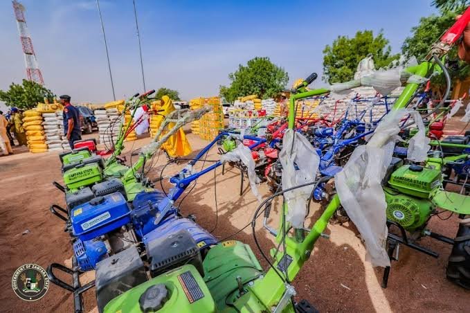 More than 700 power tillers and farming implements were also distributed to farmer groups across the 14 LGAs.
