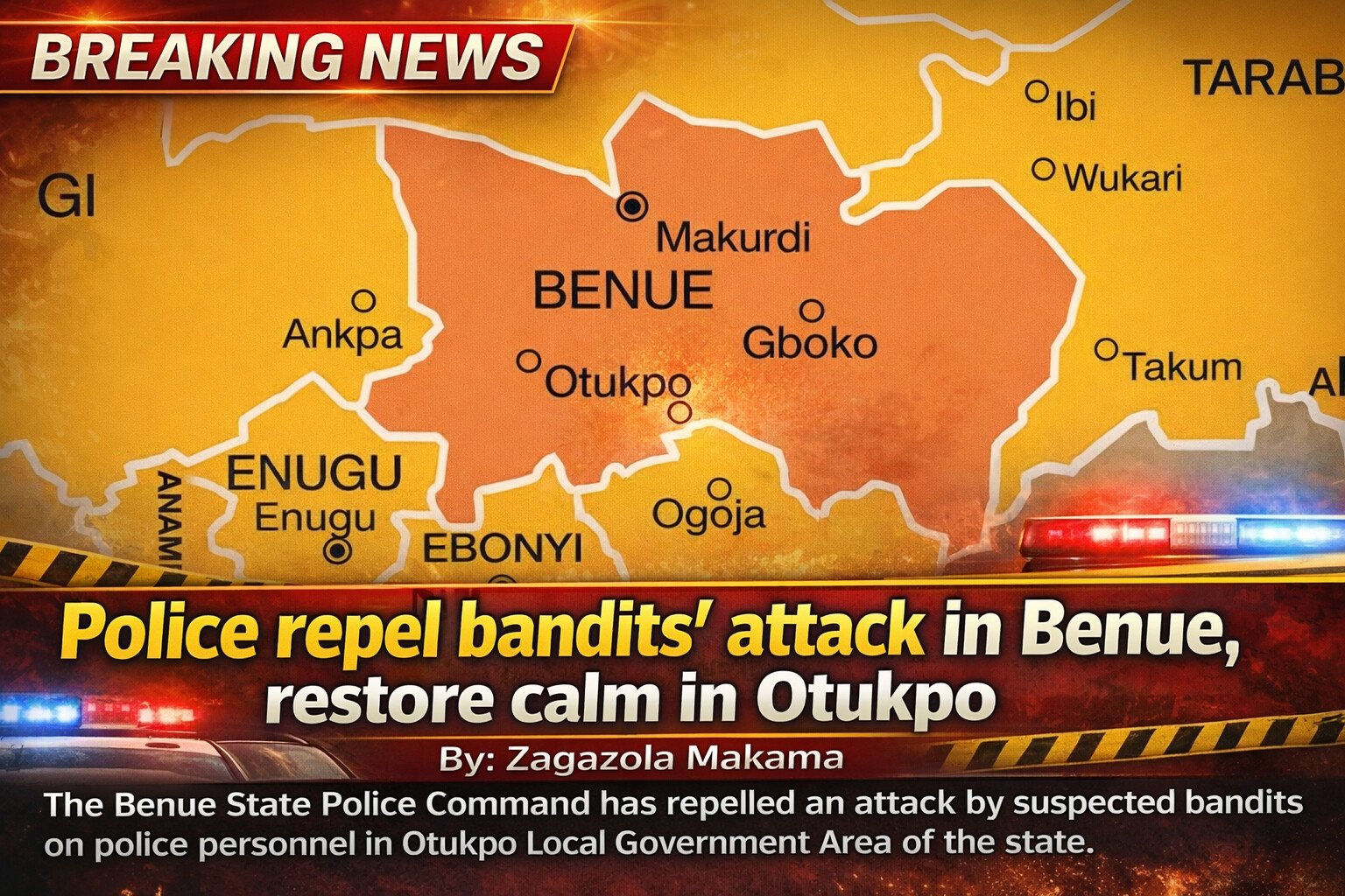 | Police repel bandits’ attack in Benue, restore calm in Otukpo By: Zagazola Makama The Benue State Police Command has repelled an attack by suspected bandits on police personnel in Otukpo Local Government Area of the state. Sources said that the... |