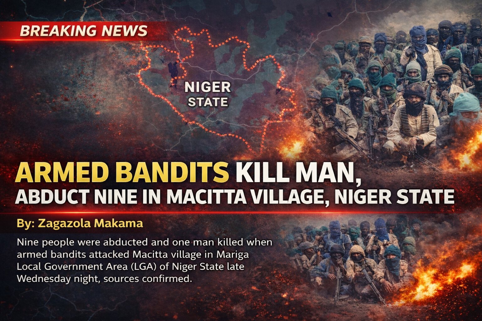 Nine people were abducted and one man killed when armed bandits attacked Macitta village in Mariga Local Government Area (LGA) of Niger... |
