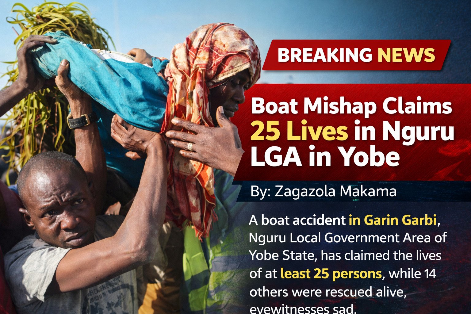 A boat accident in Garin Garbi, Nguru Local Government Area of Yobe State, has claimed the lives of at least 25 persons, while 14 others were rescued alive...
