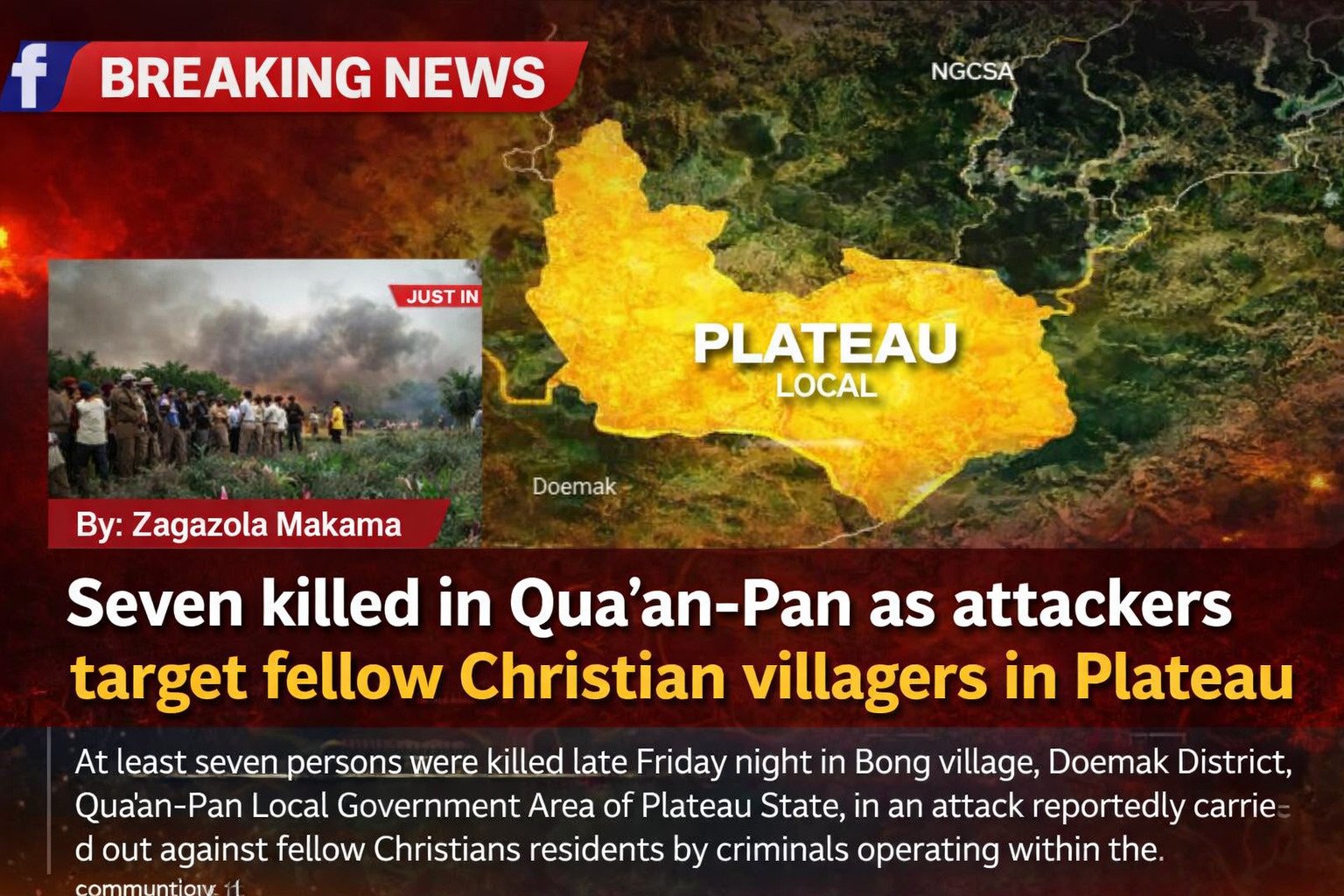 Seven killed in Qua’an-Pan as attackers target fellow Christian villagers in Plateau