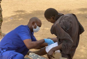 On-site clinic, referral to UMTH and 7 Div Hospital. TB cases are isolated and treated