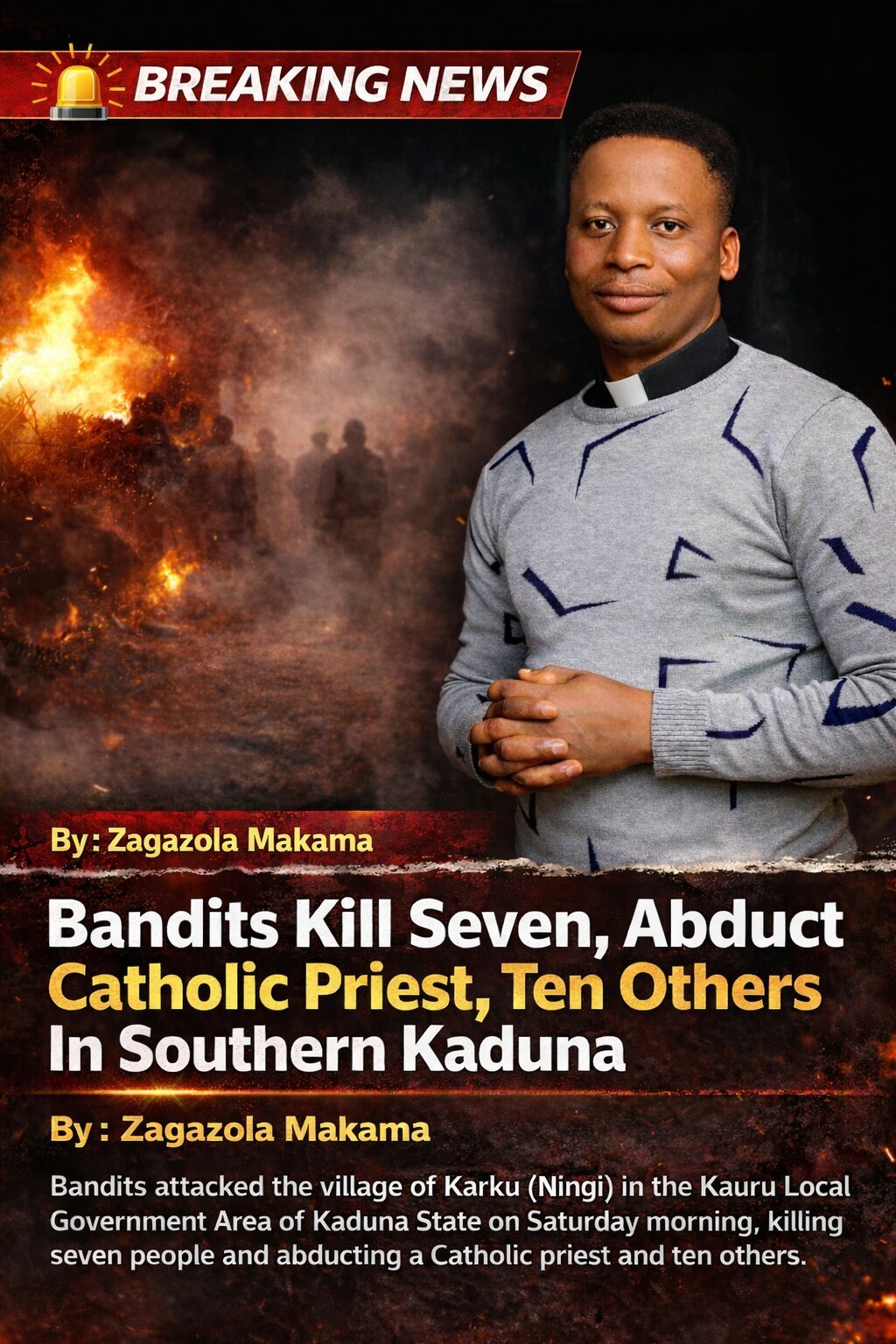 Bandits attacked the village of Karku (Ningi) in the Kauru Local Government Area of Kaduna State on Saturday morning, killing seven people and abducting a Catholic priest and ten others.