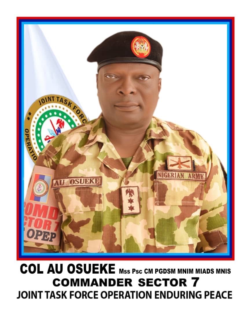 Upon assuming command as Commander of Sector 7, Colonel Osueke conducted an immediate and decisive assessment of the security situation in Southern Kaduna. He personally led multiple offensive operations, successfully clearing notorious criminal hideouts in the Rahama Forest, Kwal Mountains, Kigam Forest, Kamarun-Chawai, Godogodo, Dogon Daji Forest, and Ambe General Areas.