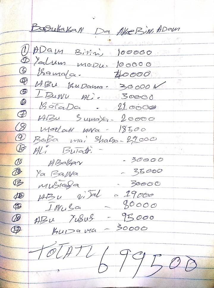 The names of fighters who took loans were written in the note.