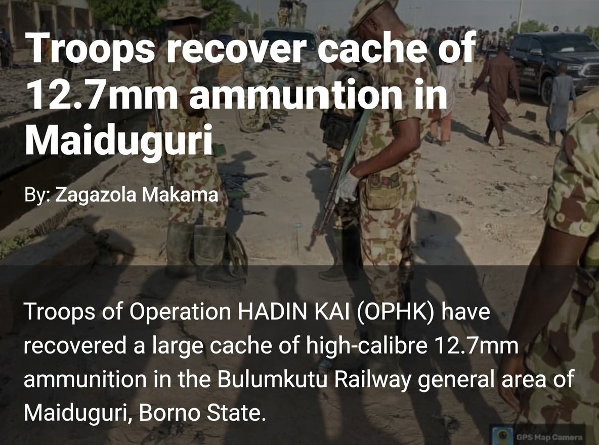 Troops of Operation HADIN KAI (OPHK) have recovered a large cache of high-calibre 12.7mm ammunition in the Bulumkutu Railway general area of Maiduguri, Borno State.