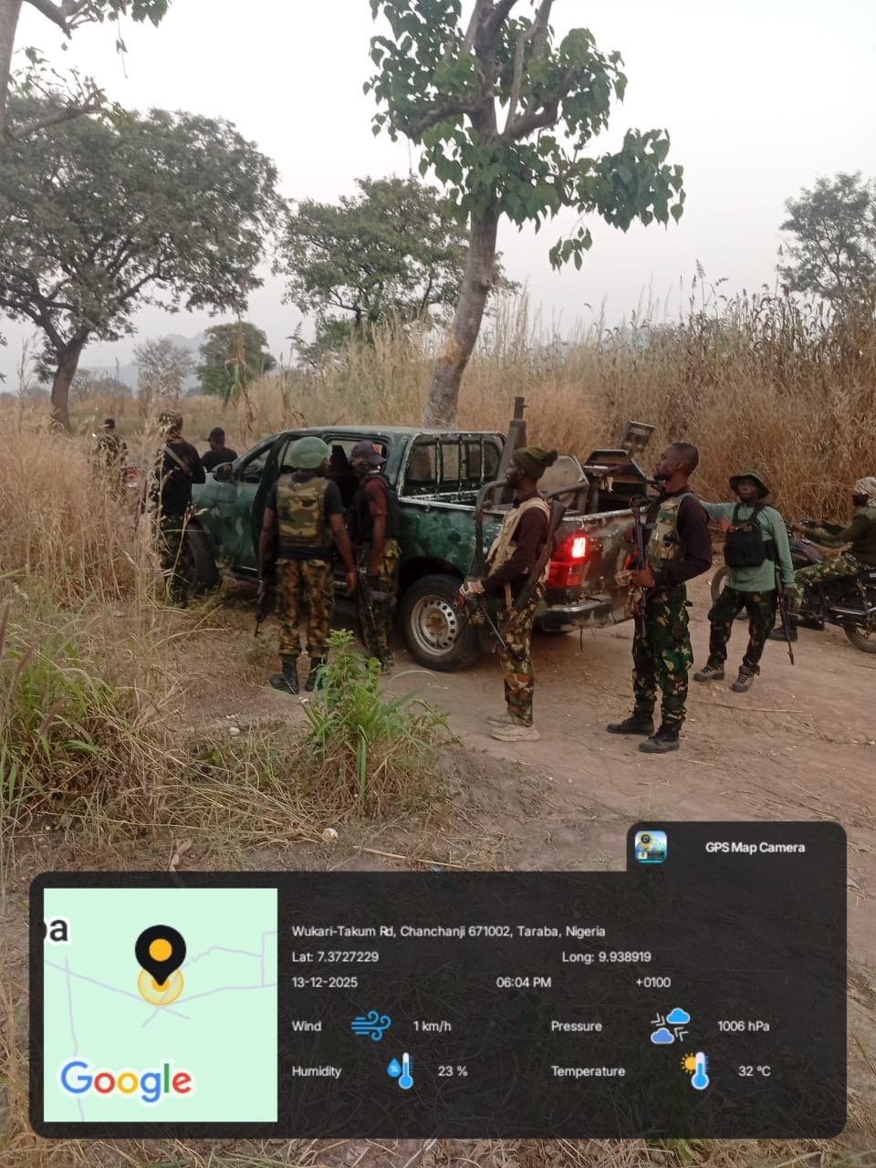 Sources told Zagazola Makama that the troops, deployed at Kufai Amadu in Takum LGA, received information at about 1:13 p.m. on Friday about a kidnapping incident at Torikegha village, Chanchanji Ward.