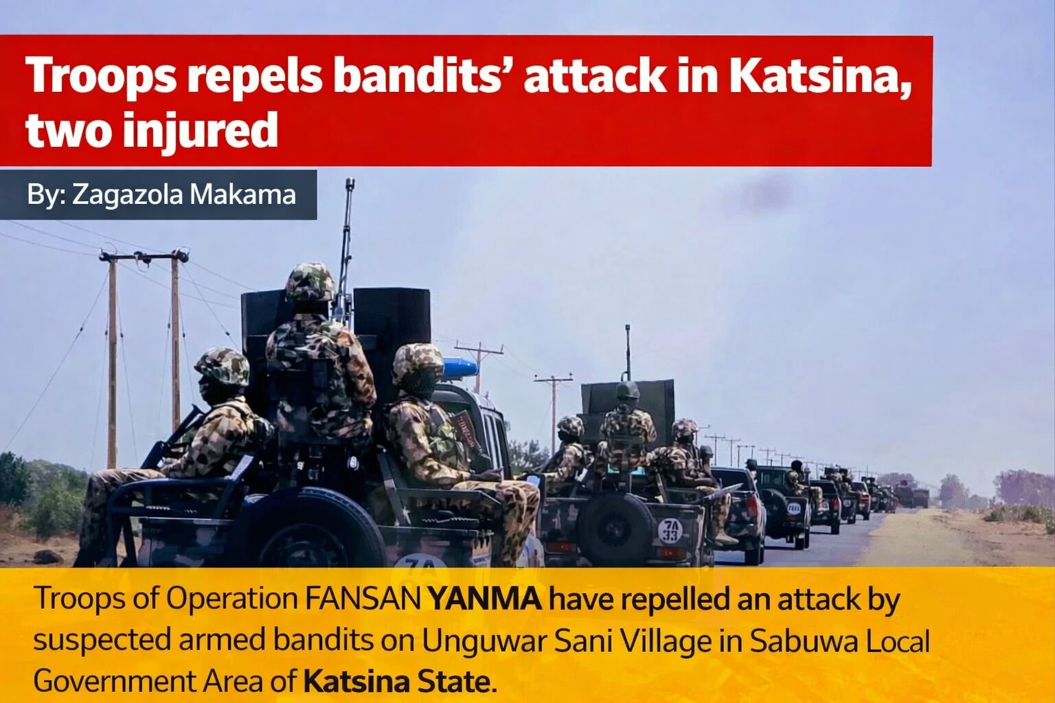 - Troops repels bandits’ attack in Katsina, two injured 3 minutes ago